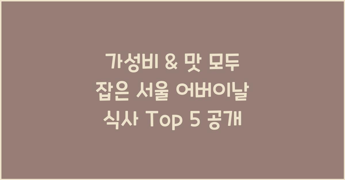 매년 어버이날이 다가오면 많은 이들이 고민에 빠지게 됩니다. 부모님께 어떤 특별한 날을 만들어 드릴 수 있을까? 외식으로 기념하기 위해서는 가성비와 맛을 모두 만족시켜야 하죠. 그래서 오늘은 ‘가성비 & 맛 모두 잡은 서울 어버이날 식사 Top 5’를 소개해 드리고자 합니다. 각 식당의 특별한 매력과 그들의 메뉴를 통해 부모님과의 소중한 시간을 더욱 빛내줄 수 있기를 바랍니다.