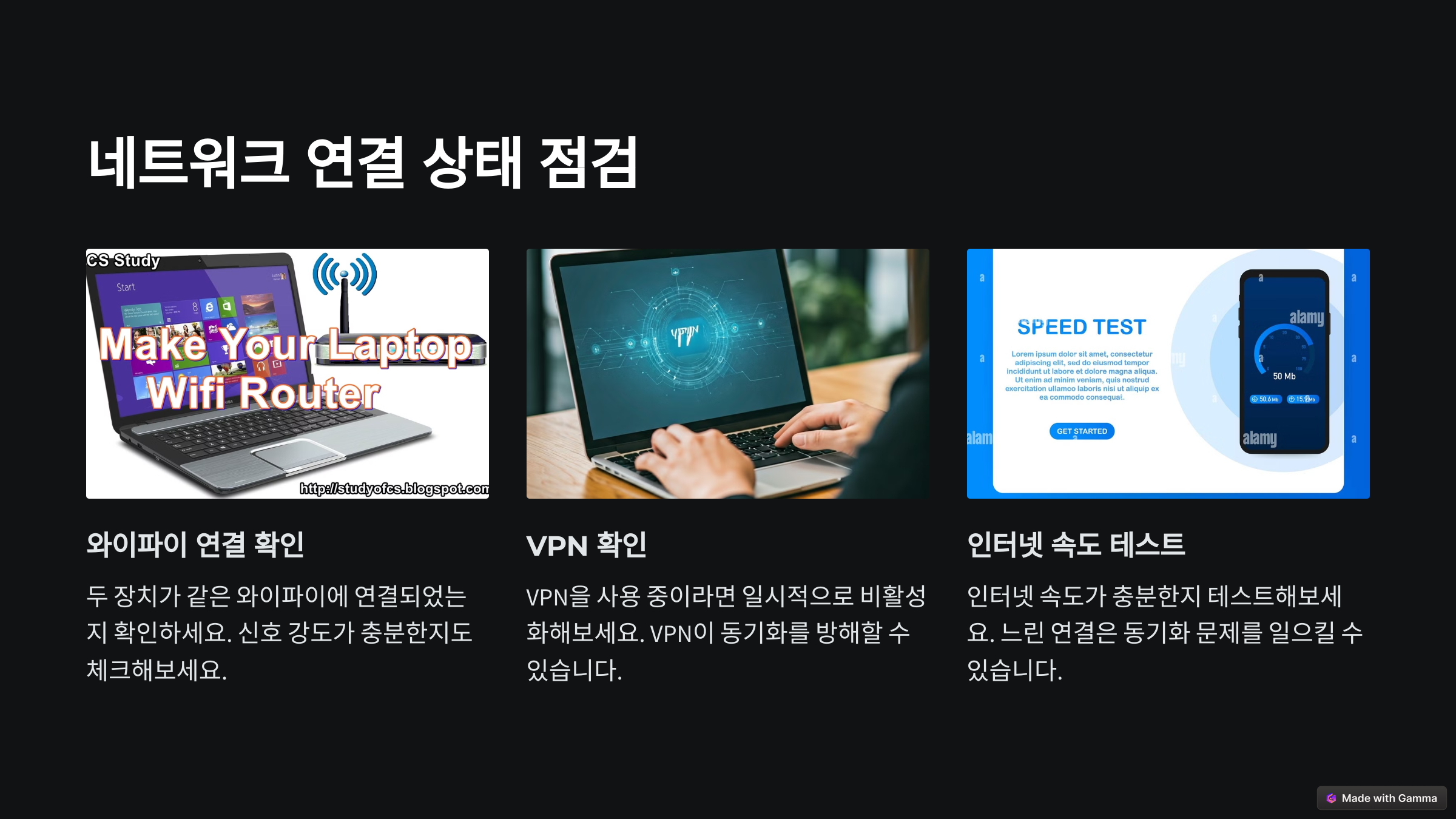 - 같은 와이파이 네트워크를 사용하면 동기화 속도가 더 원활해집니다.