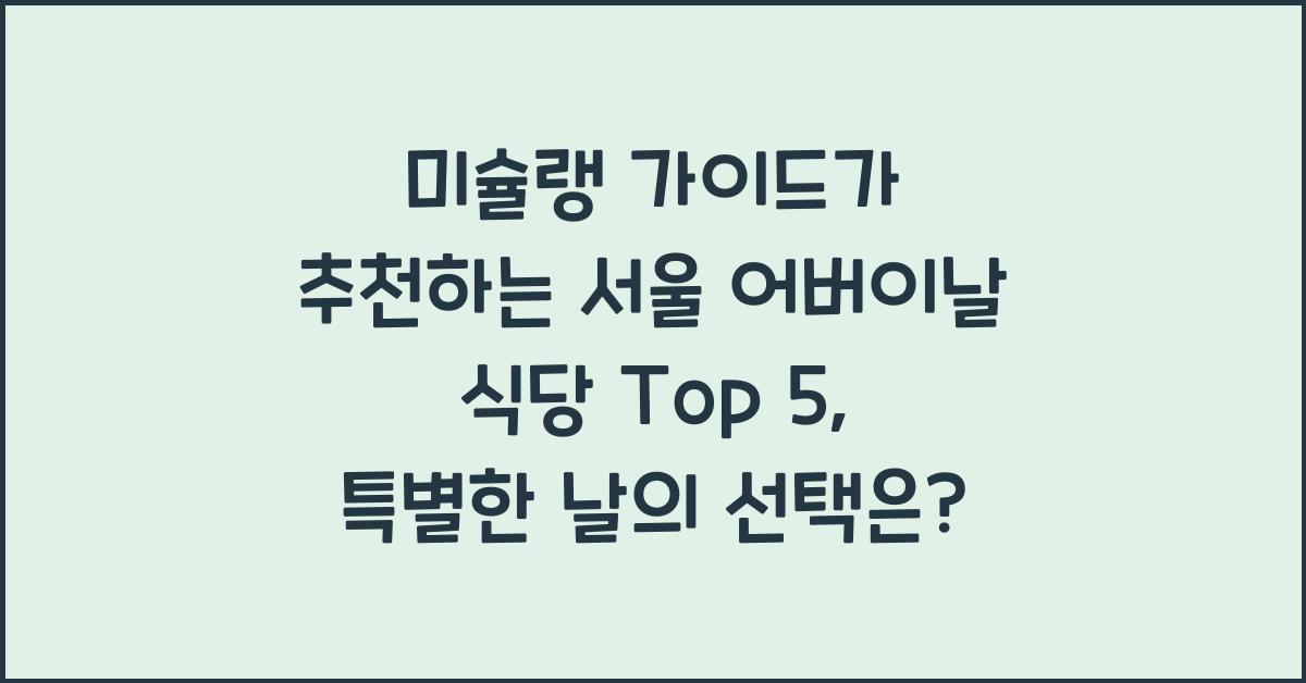 서울의 미슐랭 가이드에 등록된 레스토랑은 고유의 매력과 풍미를 지니고 있습니다. 이곳들은 대개 서비스 수준이 뛰어나고, 다채로운 요리들이 넘쳐 납니다. 여기서 소개할 미슐랭 가이드가 추천하는 서울 어버이날 식당 Top 5는 부모님과의 특별한 만남을 더욱 빛내줄 것입니다.