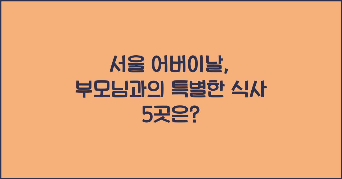서울 어버이날, 부모님과 특별한 식사를 위한 5곳의 추천 장소를 통해 소중한 순간을 만들어 보세요. 각각의 장소가 제공하는 맛과 분위기에서 부모님과의 유대감을 더욱 깊게 할 수 있습니다. 정성이 가득한 식사 뿐만 아니라, 가족 간의 따뜻한 대화를 전할 수 있는 기회가 될 것입니다.