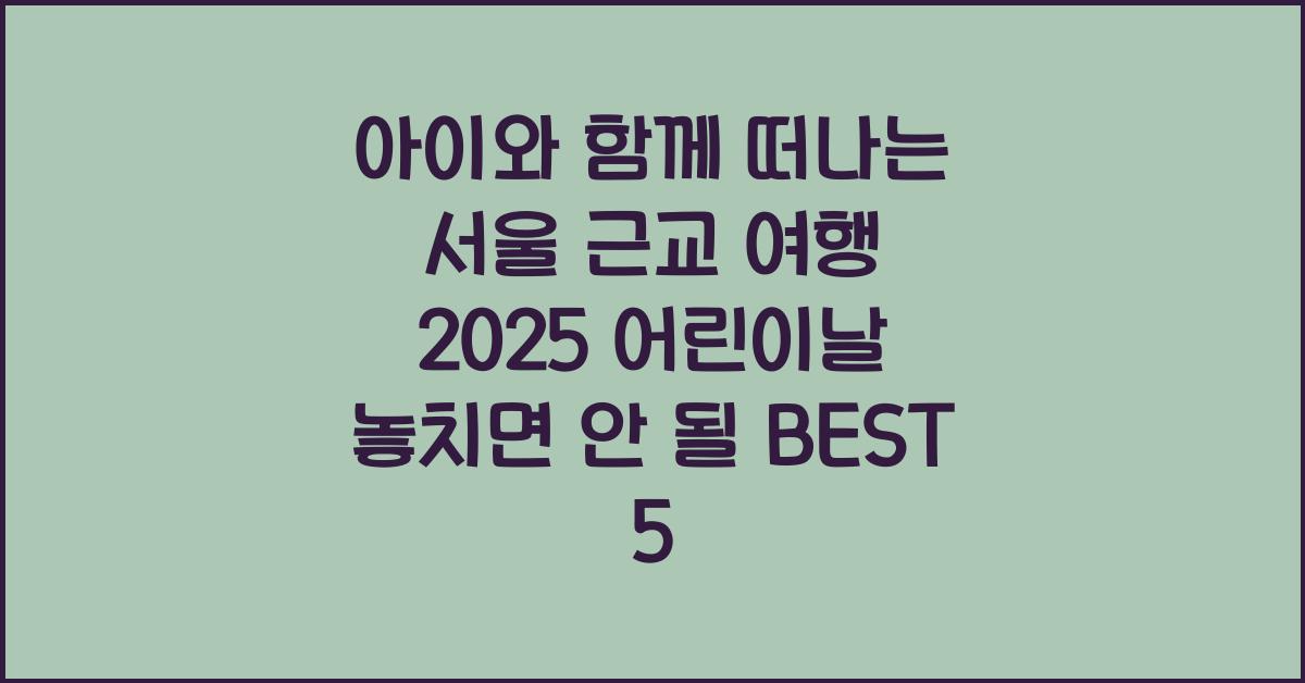 아이와 함께 떠나는 서울 근교 여행! 2025 어린이날 BEST 5 선정지는 각기 다른 매력을 가지고 있어 아이와 함께하는 특별한 하루를 만들어줍니다. 자연과 역사를 느끼고, 신나는 놀이와 재미있는 체험을 통해 가족의 유대를 더욱 돈독히 할 수 있는 기회들을 만끽하세요. 이 튼튼한 기억들은 시간이 지나도 잊지 못할 소중한 순간으로 남게 될 것입니다.
