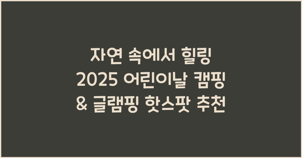 2025년 어린이날, 아이들과 특별한 추억을 만들고 싶다면 자연 속에서 힐링하는 것이 최선의 선택입니다. 이때 지친 도시의 삶에서 벗어나, 맑은 공기를 마시며 아이들과 함께 즐거운 시간을 보낼 수 있는 캠핑이나 글램핑이 제격입니다. 자연 속에서 힐링! 2025 서울 근교 어린이날 캠핑 & 글램핑 추천을 통해 특별한 장소를 찾아보세요!