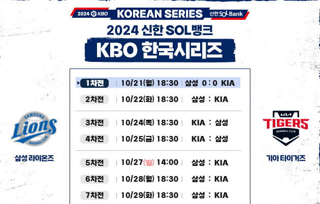 - 1차전: 10월 21일(월) 18:30, 광주-기아 챔피언스 필드