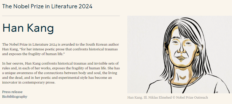 한강은 폭력, 트라우마, 인간의 내면을 탐구하는 작품들로 전 세계 독자들에게 깊은 울림을 주었습니다. 그녀의 문학은 개인의 내면적 아픔을 넘어, 역사와 사회적 억압 속에서 인간의 연약함과 치유의 가능성을 탐구하는 점에서 문학적 깊이가 있으며, 이로 인해 2024년 노벨문학상까지 수상하게 되었습니다