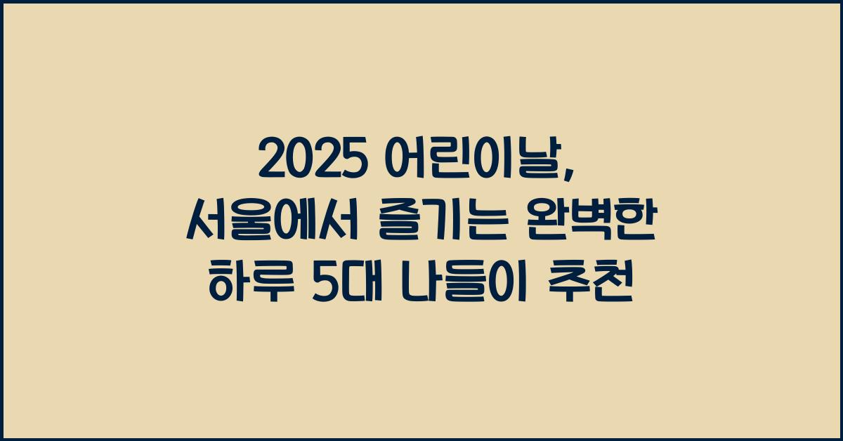 2025 어린이날, 서울에서 즐기는 특별한 하루! Top 5 나들이 코스를 통해 가족과 함께 소중한 추억을 만들어 보세요. 서울의 다양한 명소를 경험하며, 아이들에게는 교육적이고 재미있는 시간을 제공합니다. 어린이날은 가족 간의 사랑을 더욱 돈독히 하고, 즐거운 순간들을 쌓는 날이니까요.
