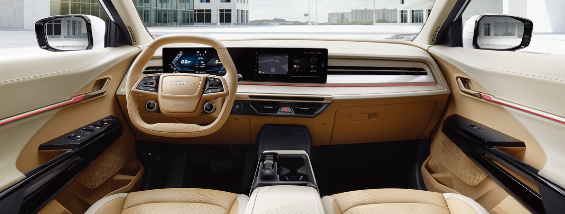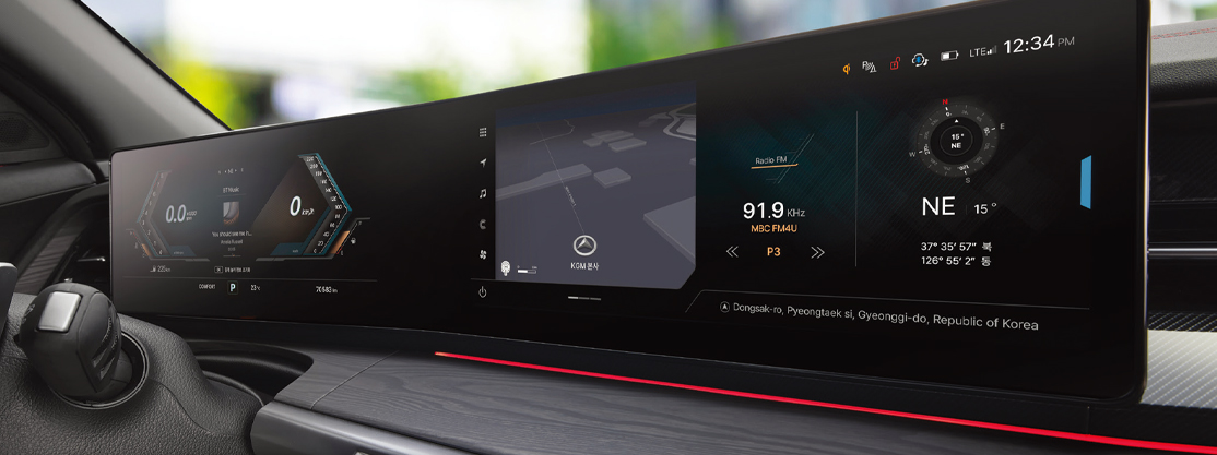 KGM 액티언 쿠페의 인테리어는 다양한 매력적인 요소를 갖추고 있습니다. 블랙과 레드 컬러의 조합이 돋보이는 인테리어는 스포티하면서도 고급스러운 느낌을 주며, 특히 D 컷 스티어링 휠에 레드 스티칭을 넣어 독특한 분위기를 연출합니다. 다양한 편의 기능이 탑재된 인포테인먼트 시스템은 직관적이고 반응 속도가 빠르며, 스마트폰과 연동이 되어 내비게이션이나 음악을 손쉽게 사용할 수 있습니다.